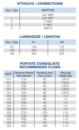 OMTP - это серия фильтров обратной линии. их ассортимент состоит из двух типоразмеров. Фильтры OMTP располагают в верхней части бака и в стандартной комплектации имеют перепускной клапан и воздушный сапун, предназначенный для фильтрации воздуха, обмениваемого с окружающей средой. Фильтрующие элементы изготавливаются из самых современных материалов, чтобы обеспечить высокую эффективность и продолжительность фильтрации. Модульное производство OMTP позволяет заказчикам выбирать наиболее подходящую конфигурацию.