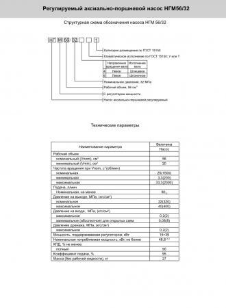 Насосы аксиально-поршневые регулируемые типа НГМ 56/32.4 с регулятором мощности используются в объемных гидроприводах машин и агрегатов в режиме регулируемого насоса.