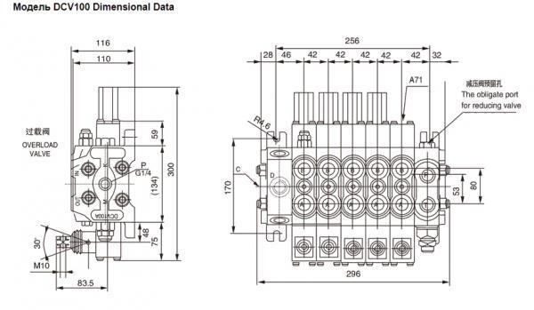 Гидравлический распределитель DCV 100 имеет не моноблочную, а секционную конструкцию. Количество секций может быть от 1й до 8ми.