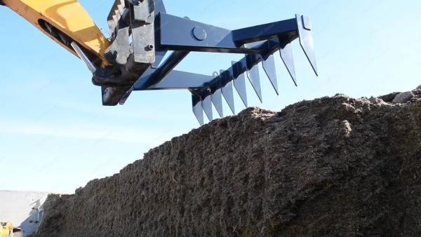 Навесное оборудование, предназначенное для удобного извлечения и сгребания корма в силосной яме. Конструкция граблей оснащена зубами, проникающими в силосную массу и производящими ее равномерный срез без риска попадания воздуха, перегрева или образования «карманов». Благодаря такому оборудованию силос можно получить на значительной высоте быстро и безопасно.