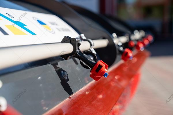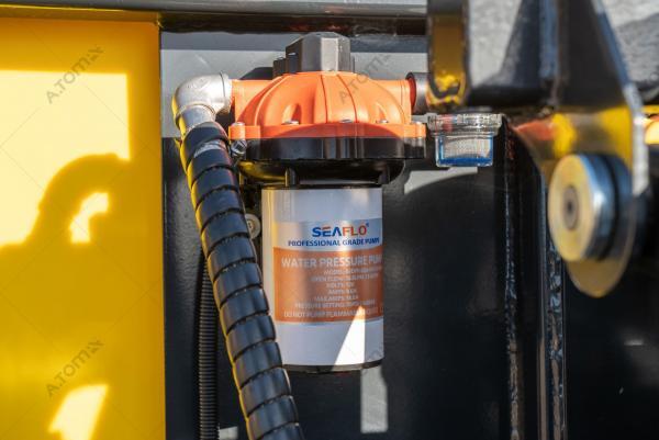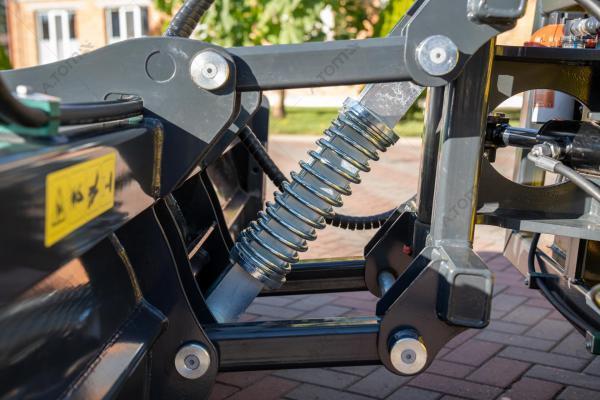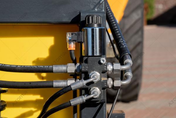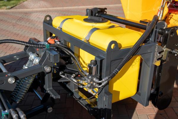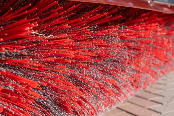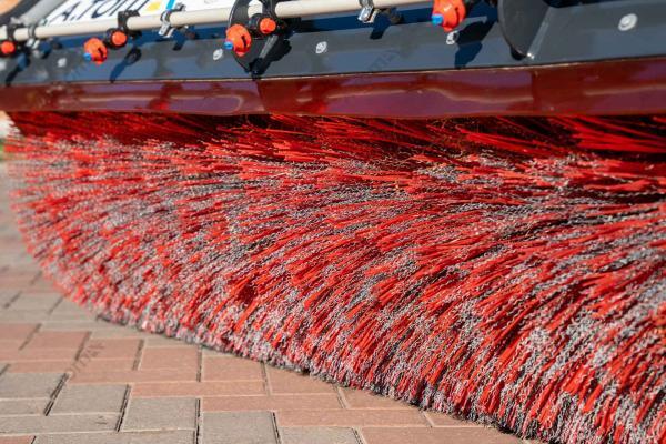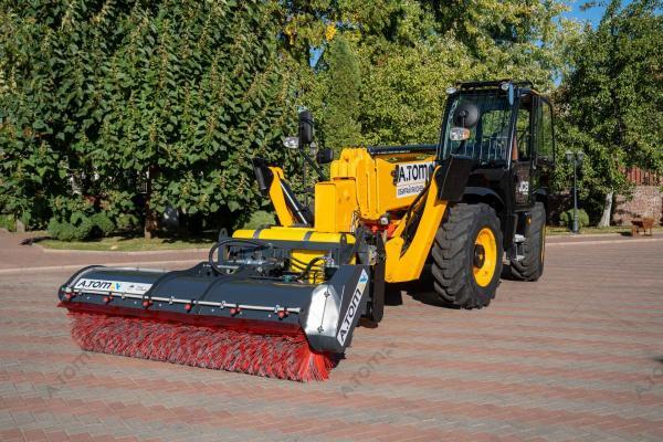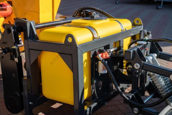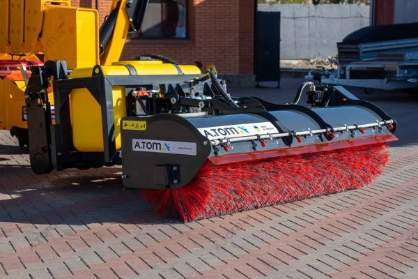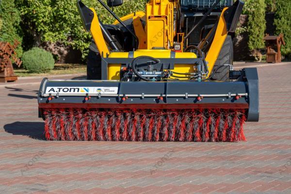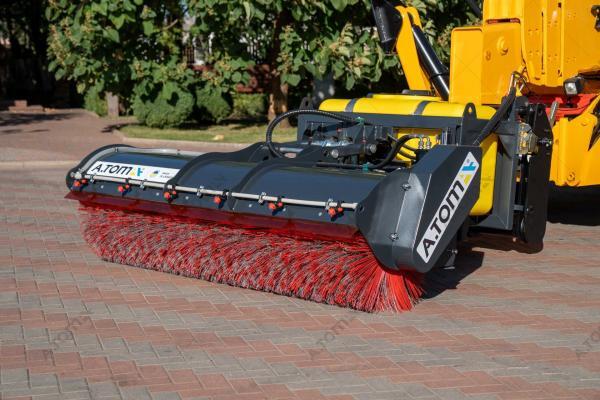 Щетка дорожная, коммунальная, с баком — функциональное навесное оборудование для минипогрузчиков, телескопических и фронтальных погрузчиков, а также экскаваторов-погрузчиков, применяемое для уборки мусора, песка и листьев на различных территориях крытых цехов, ангаров, складов, а также на дорогах, площадках с плиточным покрытием, велосипедных дорожках, дворах. Отличие от аналогов заключается в наличии бака на 300 л, что позволяет собирать пыль, песок, мокрую грязь, мелкие камни, щебень, строительный мусор. В зимний период может применяться для уборки снега. Качественная видимая расчистка участка происходит за один ход. Конструкция щетки имеет сменные полипропиленовые диски с высокой жесткостью ворса. Корпус щетки выполнен из износостойкой стали S355.