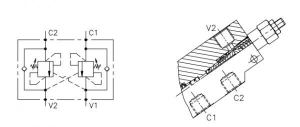 Двусторонние тормозные клапаны VBCD предназначены для обеспечения плавного опускания нагруженных попутной нагрузкой гидродвигателей. Кроме того, клапаны обеспечивают функцию запорного элемента (гидрозамка), функцию ограничения максимального давления и предотвращения кавитации.