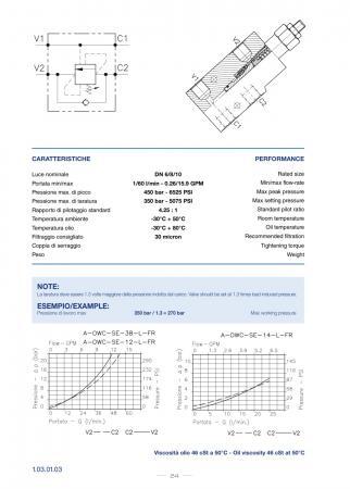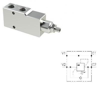 Односторонние тормозные клапаны A-OWC предназначены для обеспечения плавного опускания нагруженных попутной нагрузкой гидродвигателей. Кроме того, клапаны обеспечивают функцию запорного элемента (гидрозамка), функцию ограничения максимального давления и предотвращения кавитации. Указанные функции обеспечиваются для линии гидродвигателя, подключенной к порту С2 клапана.