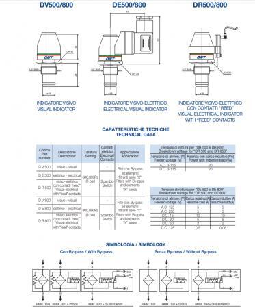 Датчик загрязнения напорного фильтра DV500. Индикатор загрязненности сигнализирует о необходимости заменить элемент до того, как перепад давления достигнет значения, заданного для перепускного клапана.