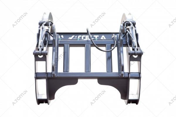 Захват для колод, бревен - AТOM 1700 — навесное оборудование, предназначенное для выполнения широкого спектра сельскохозяйственных, лесозаготовительных работ: погрузка, разгрузка и перемещение бревен, деревьев, веток, кустарников. Конструкция оснащена двумя гидроцилиндрами, регулирующими подъем/опускание специального прижима, предотвращающего выпадение бревен. Специальная форма вил нижней части захвата разработана таким образом, чтобы избежать повреждения груза цилиндрической формы, поэтому его можно применять для работы со столбами, рулонами, трубами.