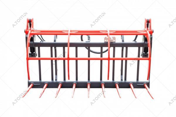 Захват для компоста EXPERT 820 — навесное оборудование для телескопического или фронтального погрузчика, предназначенное для погрузки и транспортировки различных материалов: компост, навоз, мусор, силос, кормовые смеси и т.п. Верхняя часть состоит из четырех серповидных кованых зубцов, которые крепко прижимают загруженный материал к стенке захвата и предотвращают рассыпание. Движение производится с помощью двух гидроцилиндров. На нижней части механизма находятся горизонтальные сменные кованые зубы. Прост в монтаже и обслуживании, одновременно имеет конструкцию повышенной прочности для интенсивной эксплуатации в сельском хозяйстве.