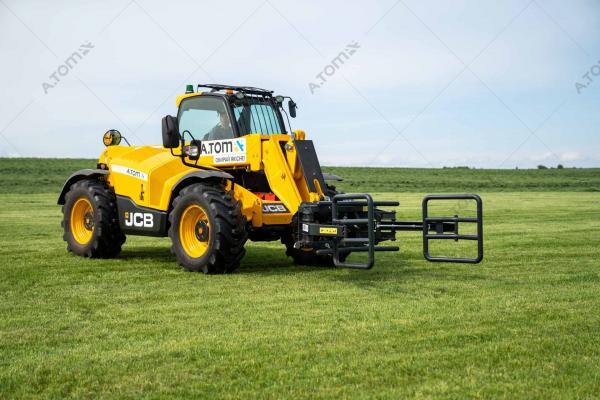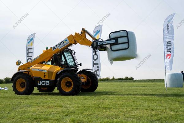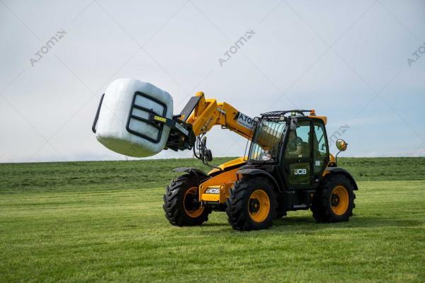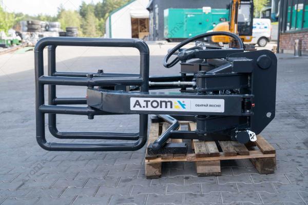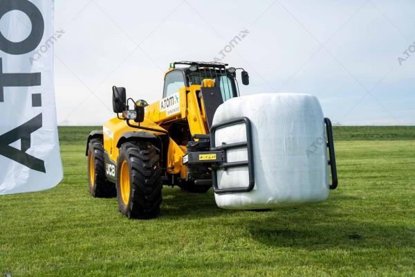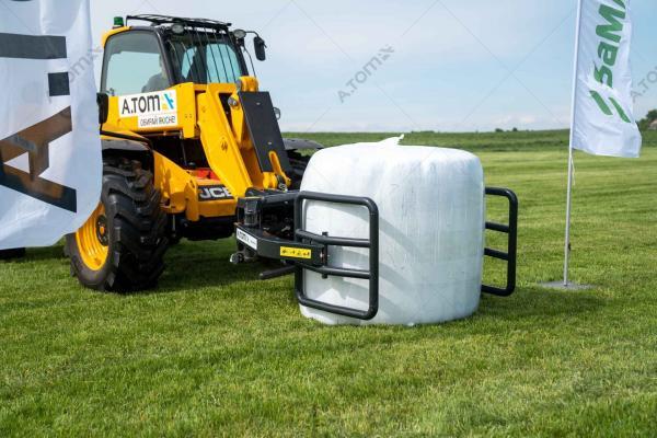 Захват для круглых тюков, рулонов - AТOM 1500— профессиональное оборудование для подъема, транспортировки и штабелирования тюков сена и соломы круглой формы как в пленке, так и без. Универсальная конструкция грузоподъемностью 1500 кг позволяет также работать с рулонами, полиэтиленом, силосом и другими грузами со значительной массой. Большая площадь захвата двойного рабочего органа, оптимальное давление и отсутствие острых углов обеспечивают надежную фиксацию без повреждения тюков. Оборудование агрегатируется с тракторами, телескопическими и фронтальными погрузчиками.